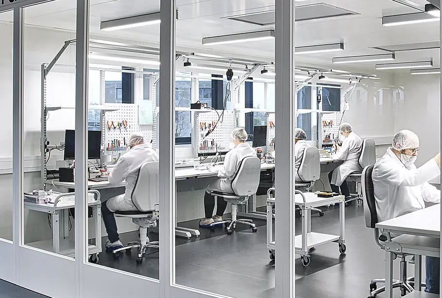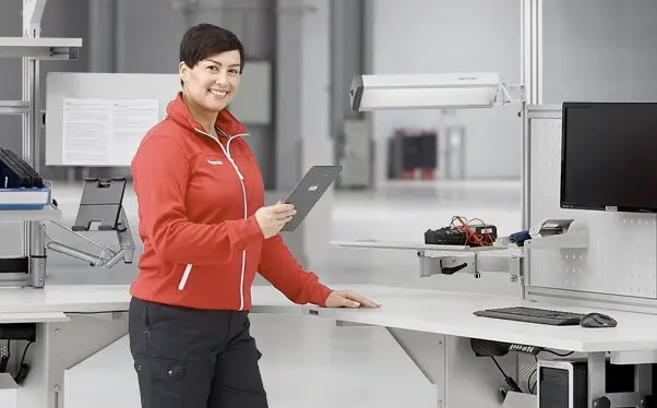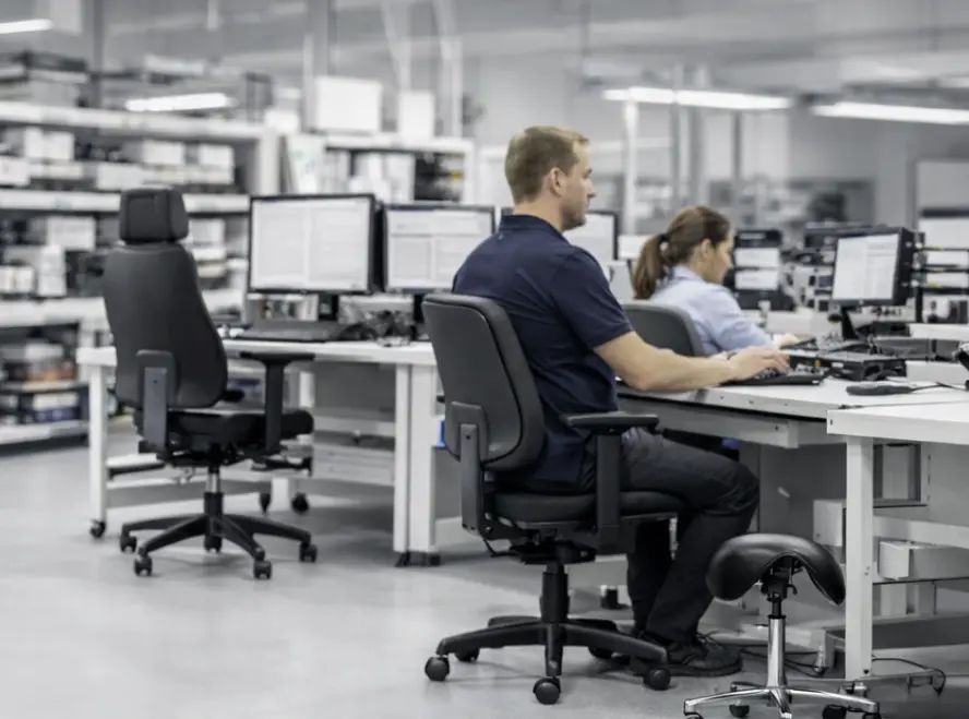 Unsere ergonomischen Arbeitsplatzlösungen sind mit integriertem ESD-Schutz erhältlich, konform und zertifiziert, sicher und zuverlässig sowie individuell anpassbar.