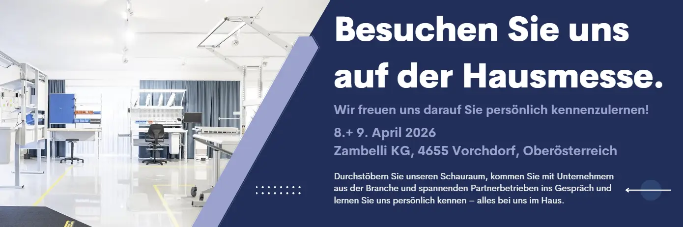 Zambelli-Arbeitsplatzeinrichtungen sind dabei vielseitig einsetzbar: vom ESD-geschützten Bereich über Montage- und Fertigungsarbeitsplätze bis hin zu Verpackungs- und Logistiklösungen.