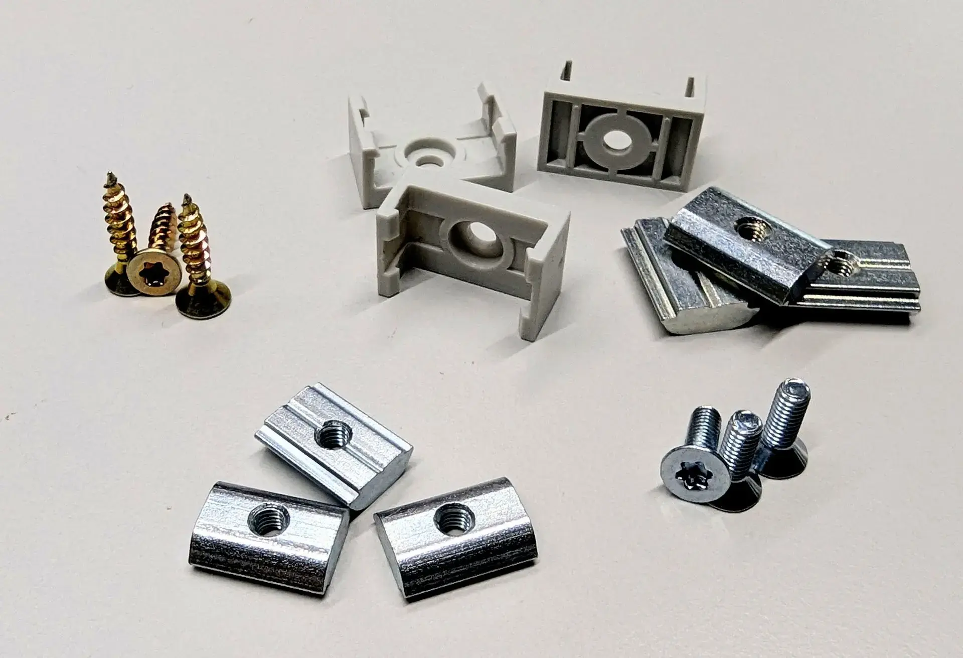 - breites Sortiment bei den Befestigungen (Nut 8mm und Nut 10mm, Holzschrauben, Magnet, Rundrohr,...)